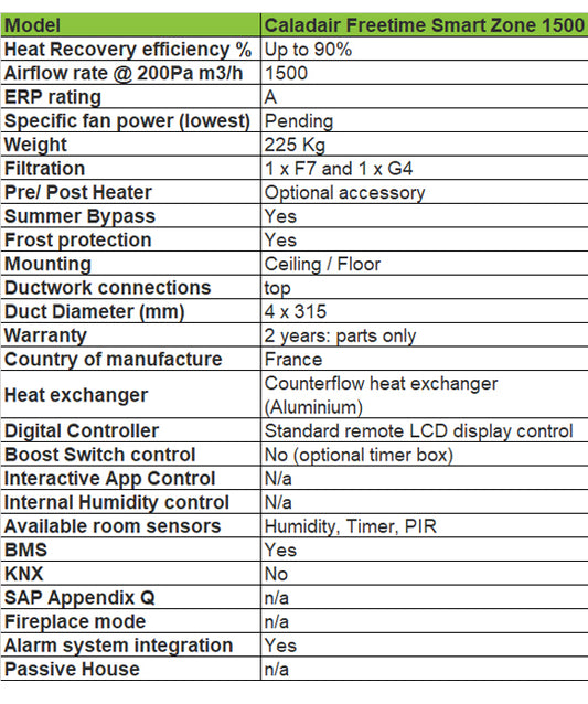 Zehnder Caladair Freetime 500 First Eco Commercial MVHR Unit
