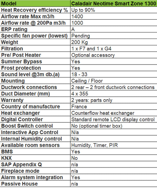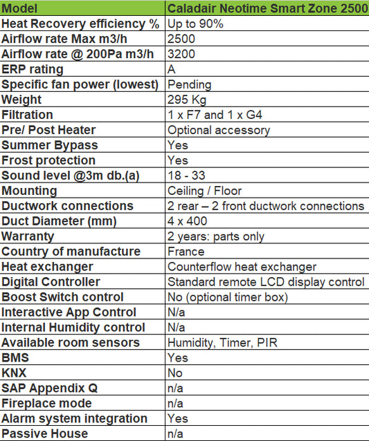 Zehnder Caladair Neotime 2500 First Eco MVHR Unit