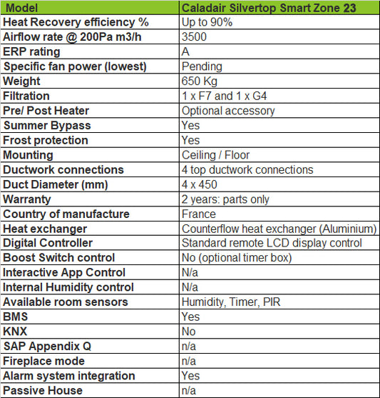 Zehnder Caladair Silvertop 23 First Eco Commercial MVHR Unit