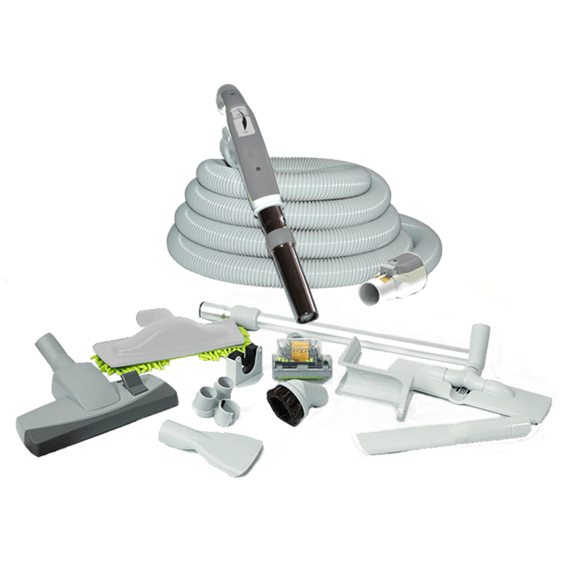 The Pro On/Off Plus Kit 8m 35mm is a complete solution for professional-grade home cleaning. Designed for efficiency and convenience, it includes an 8-meter, 35mm diameter hose with an integrated on/off switch and power control right on the handle. The kit also comes with a wide selection of brushes and accessories, making it ideal for deep and thorough cleaning throughout the home.